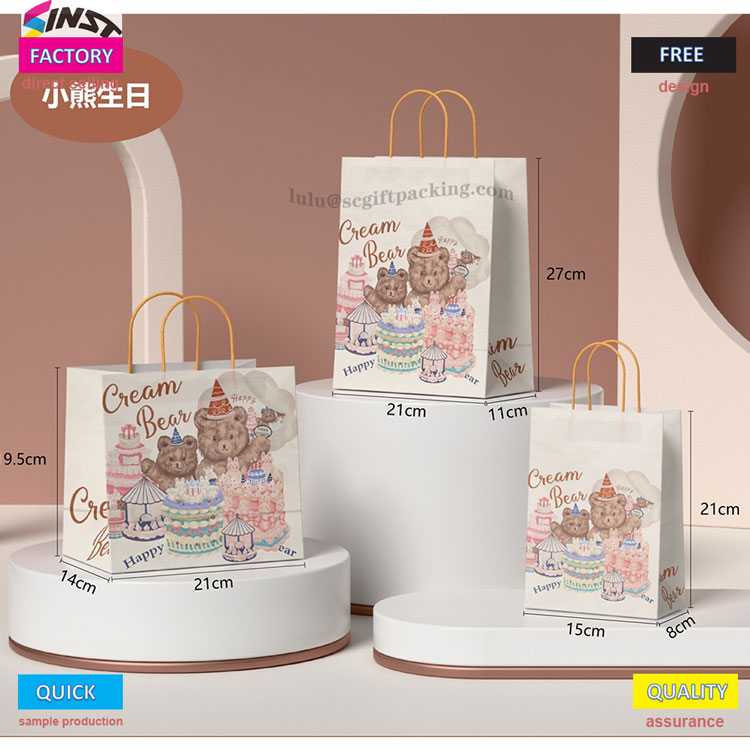 The side of the bag is integrated with logos such as "baking" and "cake", naturally blending brand elements to enhance the exclusivity and quality of the gift bag. This gift bag is available in a variety of sizes, covering small cakes, Dim sum gift boxes and other gift sizes. Whether it is a family gift or a birthday party distribution, you can find the right size, practical and considerate.