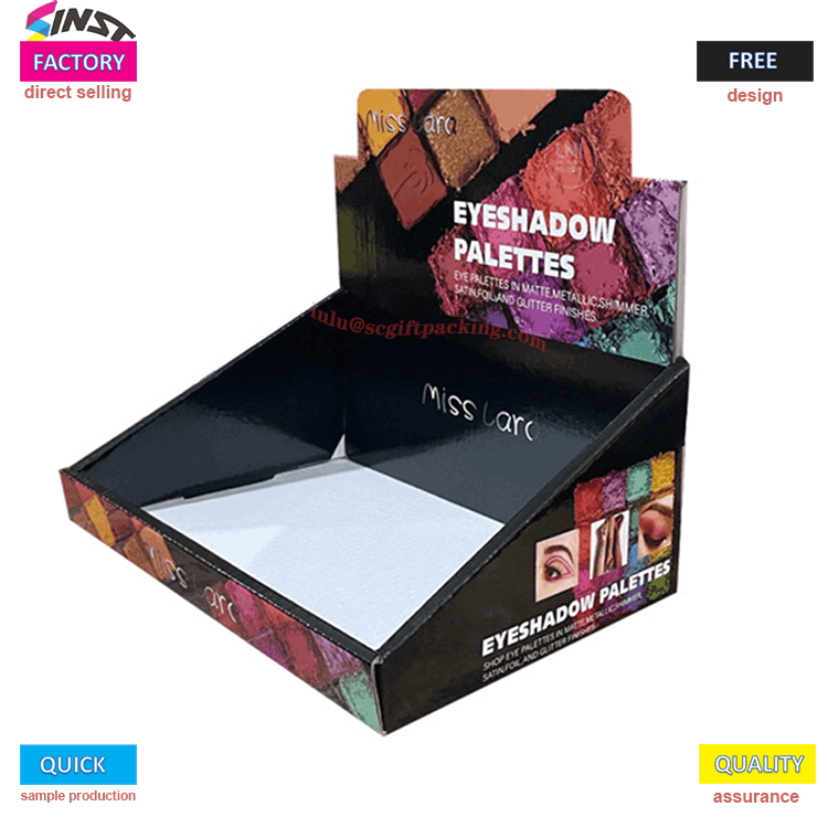 Cosmetic Makeup and Powder Blusher countertop displays are a cost-effective and environmentally friendly option. These boxes are made from lightweight and durable corrugated cardboard. For businesses that want to display their products in an attractive and professional way, counter top display boxes cardboard are lightweight and can be placed on a counter or shelf, making them perfect for displaying candy. , cosmetics or small toys and other small products.