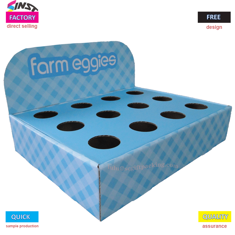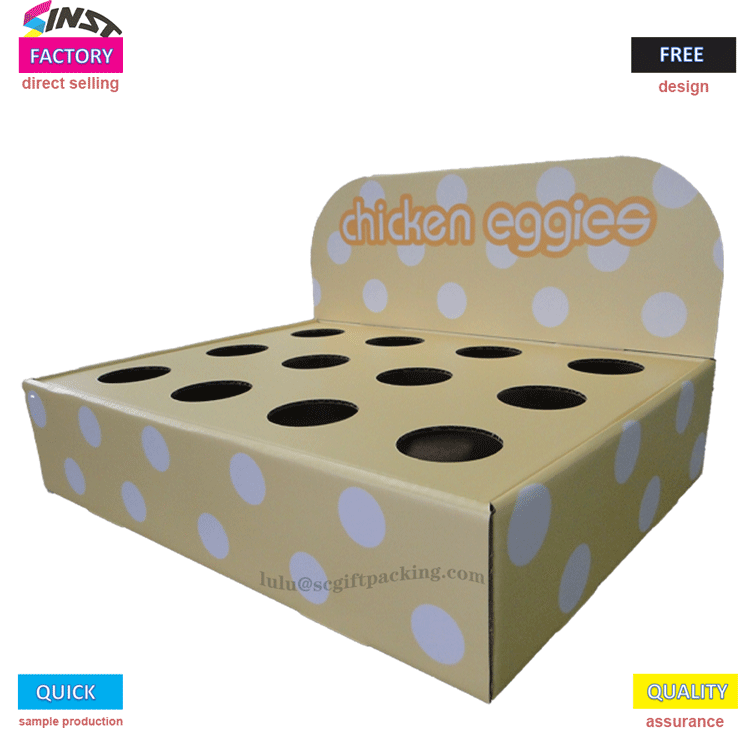 Desktop cardboard display rack for egg is a prop used to showcase and promote egg products. It is usually made of cardboard material and can neatly display eggs in an attractive way, attracting the attention of customers. Avoid damaging eggs during display.