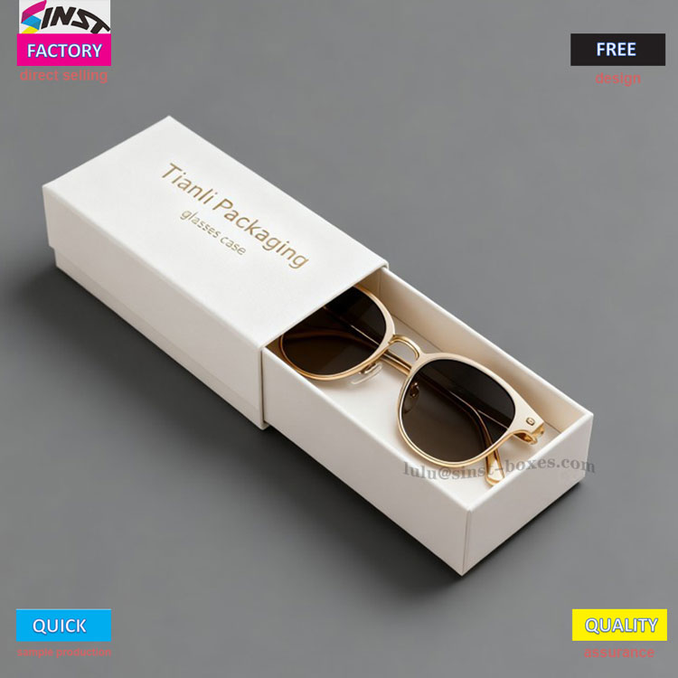 As a brand glasses case, the hot stamping text on the lid and body of the case feels textured, which sets it apart from other ordinary glasses storage cases at a glance.The Glasses gift box versatility is more prominent: it is a regular glasses storage box for daily use, with neatly arranged drawers; When giving gifts to customers or friends, the golden and white business style packaging instantly transforms into a stylish gift glasses case; If you want to be more exclusive, you can also find a factory to customize and add the brand logo or blessing message to the box body, upgrading it into a unique customized glasses case - it not only contains glasses, but also pays attention to the recipient.