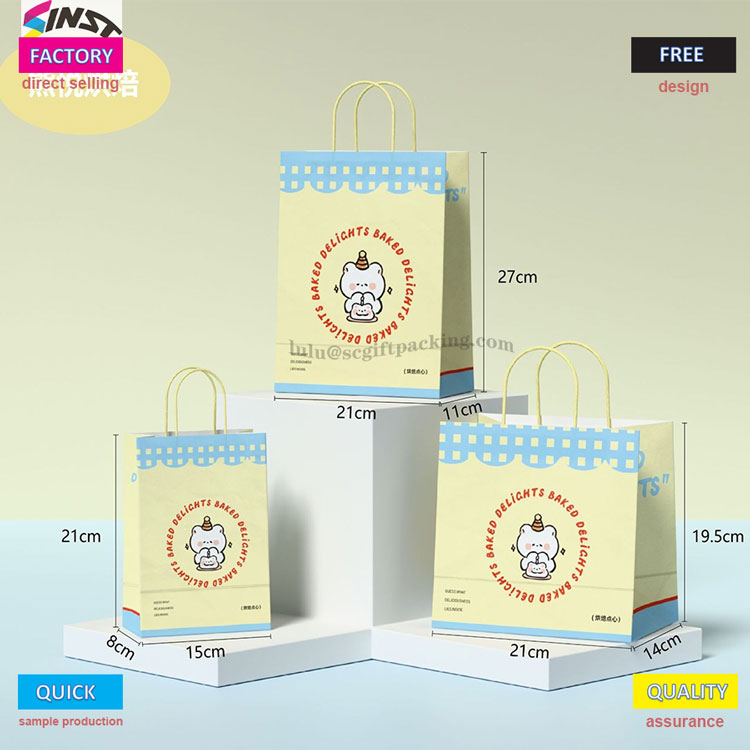 Recently, SINST Packaging Company launched a gift bag with the theme of "Bear Birthday". The bag is printed with hand drawn cartoon bear and cake patterns, paired with a warm yellow handle rope, which not only retains the environmentally friendly texture of the paper bag, but also conveys the birthday atmosphere through bright colors. This bag is suitable for various gifts such as egg cakes, toys, gift boxes, etc., whether it is a family gathering or retail store, it can meet basic packaging needs.