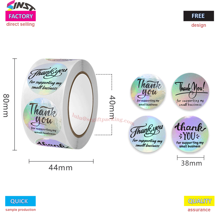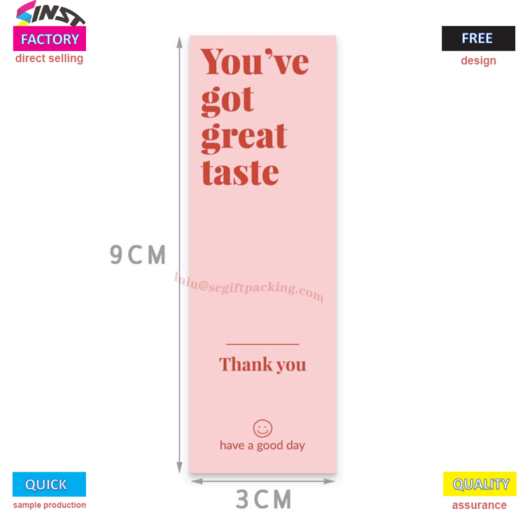 Self-adhesive thank you seal sticker label is a sealing sticker and gift thank-you sticker; Customizable in any shape, size, or material; We are a strong factory with no middlemen to earn price differences. Our company is committed to producing and selling various materials of self-adhesive label stickers. We provide one-stop services from design, plate making, printing, and packaging. Price discounts;